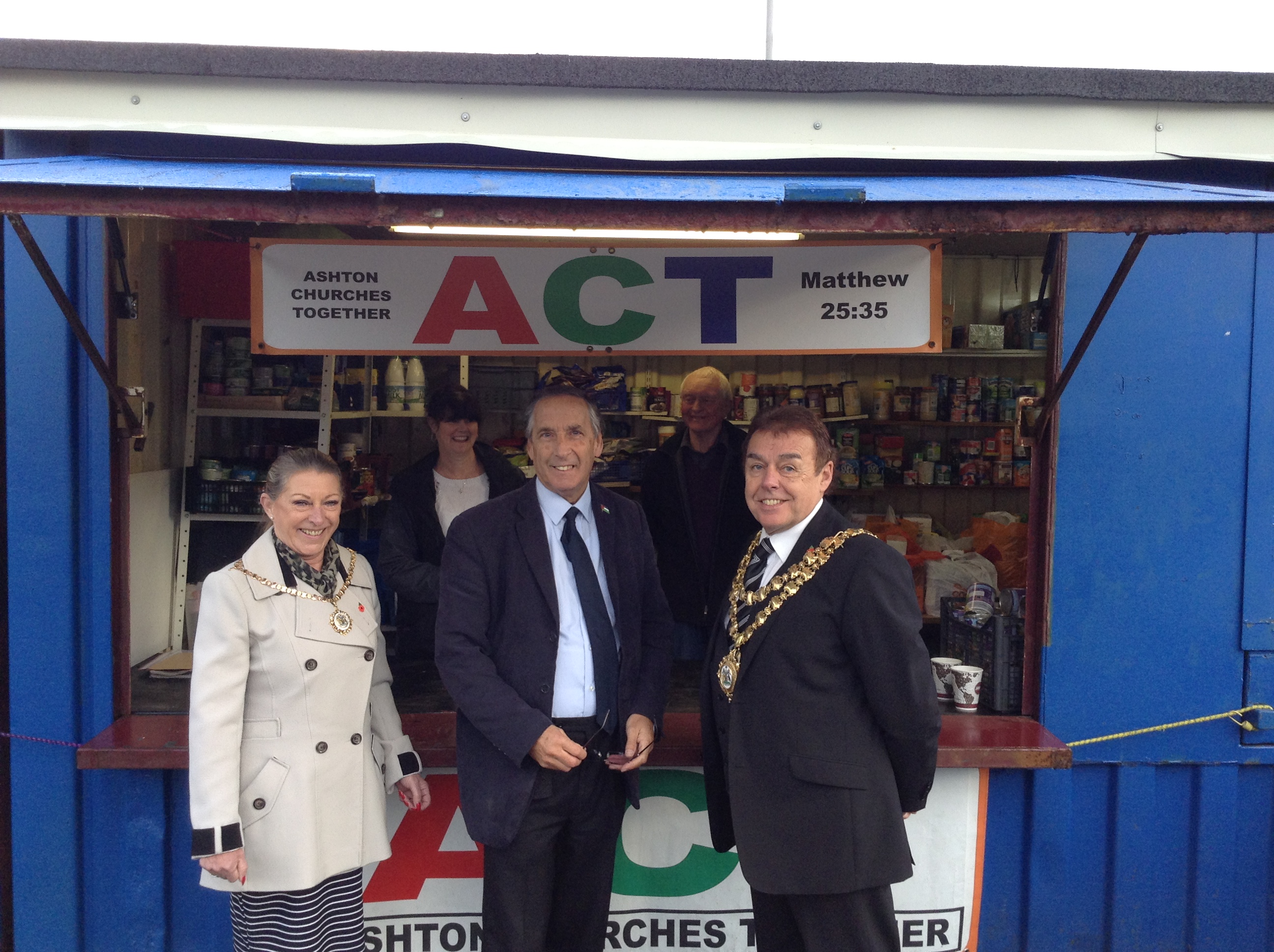 The Mayor and Mayoress of Wigan Ron and Janet Conway recently came to help the ACT food bank celebrate 4 years of existence. The Mayor praised the work of the churches and people in the community who are helping to meet the needs of those in crisis.